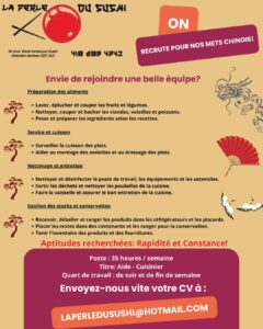 perle du sushi aide cuisinier